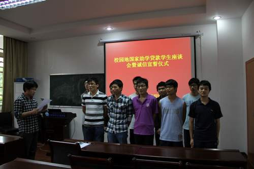 为更好的教育校园地国家助学贷款学生提高诚信意识,珍惜信用记录,5月6日下午材料科学与工程学院在屏风校区2106举行校园地国家助学贷款学生座谈会,并举行了庄严的诚信还款宣誓仪式