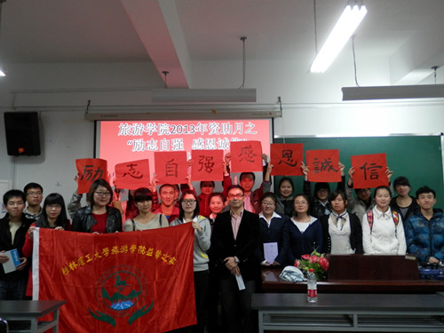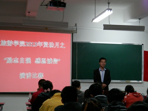 为深入宣传党和国家资助政策,加强学生思想道德教育,鼓励广大同学努力学习,励志成才,报效祖国,倡导大学生培养“励志自强、感恩诚信”的优良品格,强化感恩教育,诚信意识,充分展示大学生自强不息、立志成才、感恩诚信的精神风貌,旅游学院于4月8日晚举行了以“励志自强,感恩诚信”为主题的演讲比赛。09级辅导员唐晨铭老师以及12级辅导员张露萍老师参加了此次活动并担任评委。