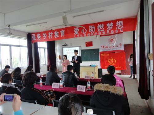 4月11日下午,人文社会科学学院青年励志社受桂林市二塘中心校的邀请参加了“乡村少年宫”活动启动仪式。该学院团委书记莫媛老师,辅导员李荣胜老师、陈琳老师及青年励志社志愿者参加了此次活动。