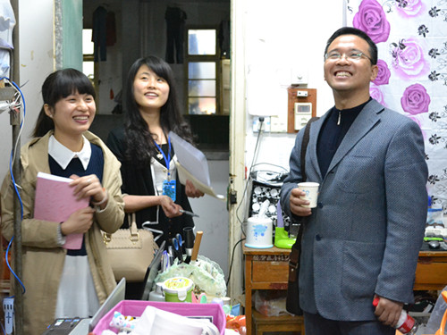 在本次检查工作中,学生们深切感受到了学院领导、老师们对学生的亲切关怀,在向老师反映各种情况的同时,不忘以他们的形式对老师们的到来表示了热烈的欢迎, 如为老师倒上一杯水,热情地邀请老师品尝家乡的小吃,邀请老师欣赏他们的小作品等等。和谐温馨的氛围萦绕在老师与学生当中,师生之间的感情也进一步加深了。