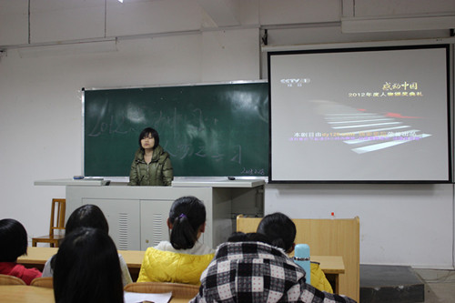 2012年感动中国十大人物评选结果已经揭晓,2月28号晚19:30,我院组织学生在雁山校区06102、06204教室观看了《2012感动中国十大人物》视频,辅导员张中华老师及11、12级同学参加了此次活动。