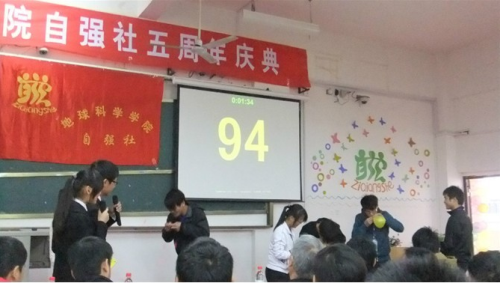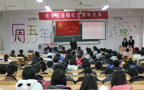 时光飞逝,我院学生励志社团自强社迎来了她的第五个生日,以“青春永在,自强不息,肩并肩,手牵手,共建和谐美好大家庭”为主题的自强社五周年庆典在06409于11月24日14:00举行。地球科学学院原党委副书记柯天海老师应邀出席庆典。同时参加本次庆典的还有蒲公英公益协会、各学院励志社团、音乐协会、英语口语协会代表以及我院11级、12级家庭经济困难学生。