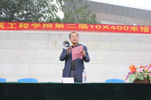 2012年10月28日上午,土木与建筑工程学院第二届10*400接力赛在英国上市公司365雁山校区足球场正式开赛,我院党委副书记迟国东、辅导员石习杰老师参加了开幕仪式。