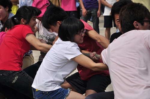 本次活动得到了各学院学生会的大力支持,活动现场邀请到了各学院的体育部长。孙圣老师出席并致开幕词。本次趣味运动会的比赛项目主要有拔河、定点投篮、六人七足和综合项。每项活动都趣味十足,充分调动了大家参与的积极性。为了让本次活动的参与性更强,更有纪念意义,其参赛队伍以班级为单位组成团队,采取男女搭配的方式分为10只队伍。此次活动的比赛项目不是传统的正式项目,而是突出其“趣味性”和“广泛参与性”,旨在展现团队的合作精神和配合能力。 从运动会开始到结束,参赛的每一个运动员每一个团队都牵动着现场啦啦队的心弦。同呼吸,共命运。彼此加油、欢呼、喝彩。现场欢声笑语此起彼伏,真实体现了大家极大的热情,缓解了平日里的学习压力。