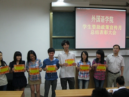 为了加强与受助学生的沟通交流,表彰在资助政策宣传月中涌现出的先进个人和集体,及时总结经验巩固成果促进我院公益事业的发展,我院于5月23日19:30在07520教室举办了外国语学院受助学生第二期沙龙即资助政策宣传月总结大会。负责学院资助专项工作的王威老师、孙志强老师及学院受助学生参加了本次会议。