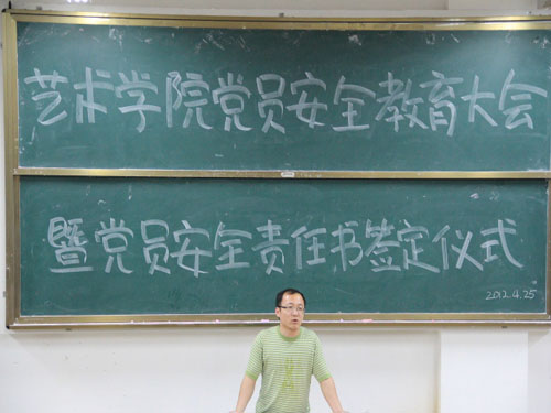 为保持共产党员先进性,发挥学生党员在维护校园安全稳定工作中的重要作用,进一步落实校园安全稳定工作目标管理责任制,确保学院学生管理各项工作顺利平稳推进,艺术学院于2012年4月25日晚在雁山校区03316教室举办了“艺术学院召开党员安全教育暨党员安全责任书签订仪式大会”。艺术学院党委副书记张成龙老师,周明权老师、官红艳老师、王洪让老师、朱丹丹老师出席会议,会议由周明权老师主持。