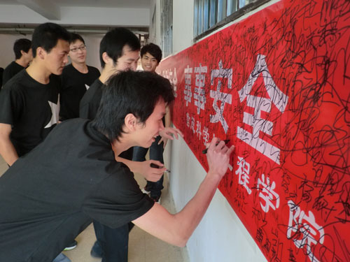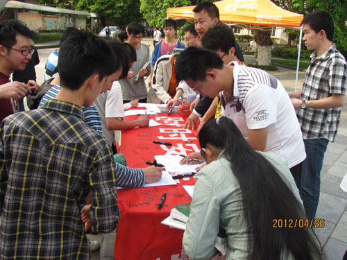 4月21日和26日信息学院分别在雁山和屏风校区开展以《我要安全,我懂安全,时时安全,事事安全》为主题的安全教育签名活动,作为2012年夏季校园安全月系列活动之一,学院党委副书记李彦东老师、各年级辅导员老师以及两校区各年级学生出席本次活动。