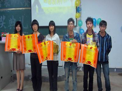 为创造美好生活空间,进一步美化学生的生活环境,营造良好的宿舍文化氛围,近期,我院举办了一次宿舍装饰大赛,并于2012年4月13日晚7:30在06105对优秀宿舍进行了颁奖,我院团委书记蒋琼老师,校学生会与各学院学生会的生活部部长参加了本次颁奖典礼。