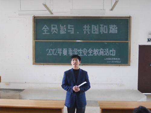 为了进一步做好夏季安全教育工作,增强同学们的夏季安全防范意识,根据学校有关通知精神,人文社会科学学院于4月9日在07119教室召开以“全员参与,共创和谐”为主题的夏季学生党员安全教育大会。学院党委书记江云清亲自到会并作动员讲话,我院在校的全体党员参加了此次会议。