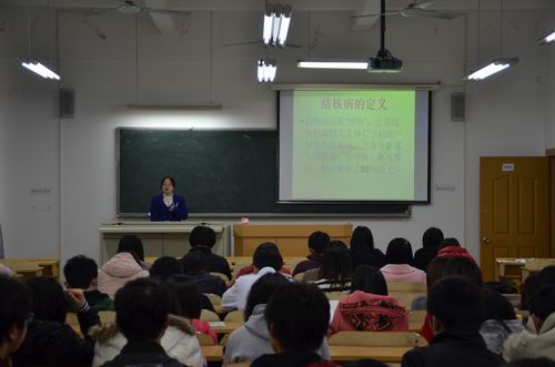 管理学院根据学校“全员参与,共创和谐”学生安全教育活动月通知要求,向我院同学普及春季预防结核病等传染性疾病知识,提高防控和应对疫情的能力,有效控制结核病在学校的传播、蔓延,维护正常的教学秩序和生活秩序, 2012年3月28日晚8:00于9303教室,桂林市第七人民医院丁莺医师应邀为我院学生举行了以“春季预防结核病等传染性疾病知识”为主题的专场讲座。