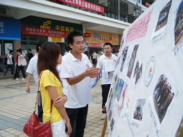 为扩大我院社会工作专业的影响力,发挥专业优势、更好的为同学们服务,我院社会工作专业精心筹备,在全校范围内开展了小组成员招募,壮大社会工作小组的力量。2011年6月13日,经过校团委和我院的批准,社会工作09-1班在食堂门口开展了小组工作实习系列活动之小组成员招募工作。本次活动是在我院社会工作专业教研室的支持和社会工作专业教师黄春梅老师的悉心指导下进行的。