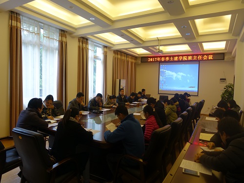 为切实发挥班主任在学生管理工作中的教育与引导作用,土木与建筑工程学院于3月23日下午在屏风校区4222会议室召开了学院全体班主任会议,会议由学院党委副书记王盛主持,各年级辅导员和班主任参加了会议。