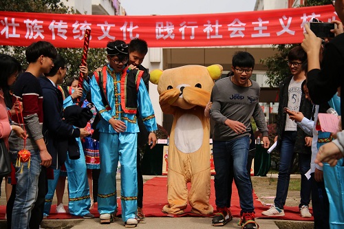 “弘扬壮族传统文化,践行社会主义核心价值观”活动启动仪式之后,今年该学院继续利用“三月三”节日期间,精心谋划,推陈出新,开展了形式多样、丰富多彩的主题教育活动。