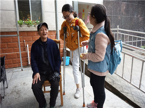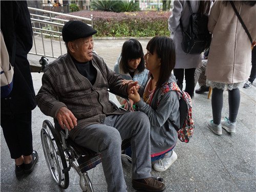 志愿者与爷爷聊天