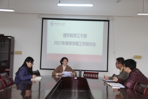 为学习贯彻落实全国高校思想政治工作会议和学校2017年学生工作务虚会精神,响应学校今后对学生工作的新思路、新举措,积极做好2017年学生工作,2月26日15:00,理学院在雁山校区07115会议室召开了理学院学工干部2017年春季学期工作务虚会。会议由理学院党委副书记孙巍主持,学院全体学工参加会议。