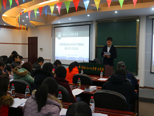 为保障2016年秋季学期末各项工作的顺利开展,促进班主任、辅导员的教育管理形成合力,不断提高我院学生工作质量。12月28日晚,我院于7307会议室召开2016年秋季学期末班主任工作会议,学院全体辅导员、班主任参加会议,会议由学院党委副书记张瑞主持。