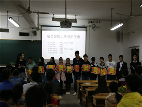 11月29日晚7点,化学与生物工程学院楼栋管理委员会于06203教室举办2016年秋季期宿舍装饰大赛暨“变形记”活动颁奖晚会。出席本次晚会的有化生学院团委书记饶筠筠老师,15级辅导员李冲老师,16级辅导员何宗辉老师以及学院全体宿舍长。