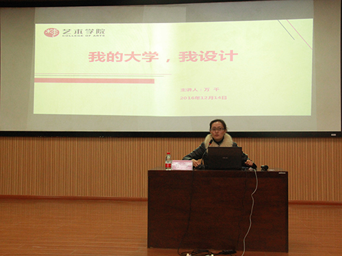 为使同学们在艺术设计学科专业大背景下发掘自身潜能,做好职业规划,培养同学们的自我设计意识。12月14日下午3点,学院党委副书记万千老师在图书馆报告举办了主题为“我的大学,我设计”艺创论坛。学院大三大四全体同学参加。