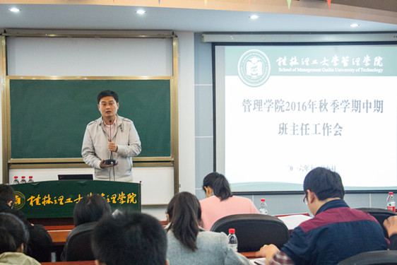 为进一步加强学院学风建设,充分发挥我院班主任在加强大学生教育引导过程中的重要作用,倡导班主任更多地参与学生成长、成才的指导工作,我院于11月9日晚在屏风7307会议室召开了2016年秋季学期11月份班主任工作会议。参加会议的人员有:学院党委副书记张瑞、学院全体学工人员以及学院全体班主任。会议由学院党委副书记张瑞主持。
