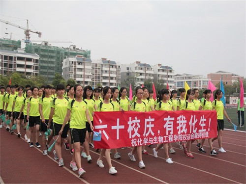 赛道上,你是飞翔的雄鹰,是射出的箭,是飞扬的火焰,是刹那的闪电!迎着飒爽的秋风,你在与时间的纷争就在这短短的几秒,而你留下了矫健的永恒。踏上跑道是一种选择,奔出起点是一种勇气,驰骋赛场是一种骄傲,执著坚持是一种胜利。蹲身预备,起跑枪声,挡不住的是健儿们如火一般的气势;奋勇向前,舍我其谁,忘不掉的是健儿们绝不放弃的咬牙坚持。田径场上,身穿靓丽的荧光绿色衣服的我院运动健儿们随处可见,特色鲜明的他们,总是活跃在各个赛场上,为运动会增添了无限精彩。短跑赛道上,速度与激情瞬间爆发,矫健的绿色身影一呼而过。横杆前,每一次跃起,一道绿色优美弧线总会带给观众阵阵惊喜;手握沉重的铅球,孤注一掷,铅球划破天际,让我们看到健儿们奋力一搏的风姿;长跑比赛中,健儿们紧握拳头,诠释了坚持就是胜利,展现化生人的毅力与信念;跨栏赛上,栏杆挡不住健儿的冲刺,一跃而过,力量与速度完美结合,身轻如燕的他让观众沉醉。