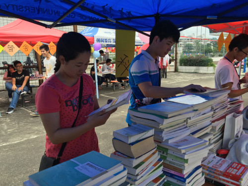 活动当天,排球场上热闹非凡,到处是吆喝与讨价还价的声音。摆台上的二手物品琳琅满目,主要以各类书籍、衣物饰品以及电子产品配件为主。物美价廉的物品、热闹的交易氛围吸引了大量同学和教职员工前来选购,得到了选购者的一致好评。