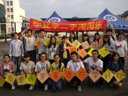 为了践行绿色发展理念,倡导绿色生活方式,2016年6月14日,在屏风校区排球场上,管理学院的学生社区服务管理中心与材料科学与工程学院的宿舍管理委员会联合举办了以“物物相传,旧是心意”为主题的“淘淘乐”二手市场。