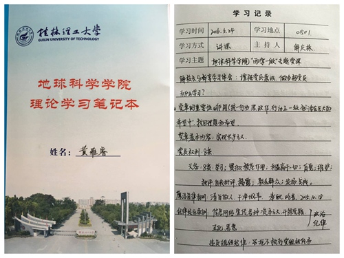 地学院本科生党员127人,研究生党员105人,为推进“两学一做”在学生党员中的有效开展,让学生党员在学习和实践中及时总结、反思和提高,特定制《地球科学学院理论学习笔记本》,分发给全院312名学生党员,并将利用“手抄党章”硬笔书法比赛的途径让学生党员真正做到静心、用心、走心。学生党员们在日常学习、生活中通过集中学习和主动自学,不断增强党员意识,争做一名合格党员。
