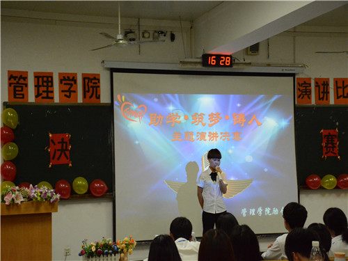 为了更好的宣传国家资助政策,加强对同学们的励志感恩教育,管理学院面向全院学生举办了以“助学·筑梦·铸人”为主题的演讲比赛。
