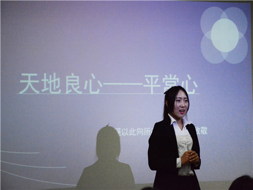 比赛期间,全场座无虚席,选手们或激昂高亢、或低沉颂吟、或深情饱满、或激情澎湃以不同的风格展示了个人的演讲魅力,同时也彰显了当代大学生积极向上的良好精神风貌。精彩的演讲不断博得同学们的阵阵掌声和喝彩声,现场气氛十分活跃。所有选手演讲完毕,首先由李鑫老师做演讲点评,他认真地指出演讲过程中的优点与不足,并现场教学,给同学们传授舞台经验及演讲技巧,使同学们受益匪浅。最后,曾丽萍老师作总结发言。她对此次比赛辛勤付出的工作人员和参赛人员表示感谢和祝贺,希望广大同学能深刻理解“助学·筑梦·铸人”的内涵,学会感恩奉献,同时强调了演讲表达能力的重要性,鼓励管理学院全体同学,尤其是家庭经济困难的同学积极参加校园文化活动,注重加强自身能力的培养和锻炼。经过激烈的角逐,房地产开发与管理14-1班的尚楠同学演讲的《天地良心——平常心》获得本次演讲比赛的一等奖。