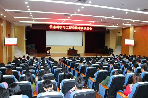 3月22日晚,信息科学与工程学院在雁山校区图书馆报告厅举行了考研动员大会,学院党委书记于海平、副院长谢晓兰、副院长董明刚,以及考研学生代表参加了此次大会,会议由学院党委副书记李彦东主持。