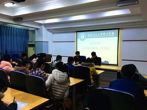 为进一步加强我院心理健康教育工作水平,确保本学期心理健康各项工作顺利开展,有效预防和避免学生心理危机事件发生。3月11日晚,我院于7309教室召开心理健康教育工作会议。学院党委副书记张瑞及2013级、2014级各班心理委员参加会议,会议由辅导员贺旋主持。