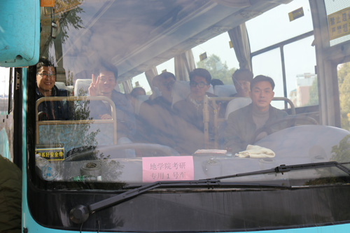 地球科学学院党政领导历来重视学生的考研工作,针对2012级本科生考研工作,从2014年12月份就组织各学院领导对应教研室开展了两次以上的集中动员和引导工作,对于部分学科优势专业,还分类由班导师和对应辅导员进行再动员。在尊重学生自主决定的基础上,学院从考研动员、报名、确认,到考研准备、复习场所提供、困难学生帮扶等各个环节都给予了倾向性支持和帮助。今年12月25日中午,在考虑到桂阳公路改造导致交通不便、服务和保障学生安全顺利考研等因素下,学院专门组织调配两辆大巴车集中乘车前往屏风校区查看考场,在出发前,学院党委书记姜子亮、副书记耿俊茂及辅导员谷正杰还专题进行了安全提醒和教育,并送上温暖的祝福和温馨的提示,希望同学们能开心参考、顺利完成,并取得理想成绩实现自身价值新超越。