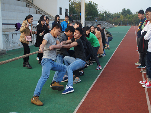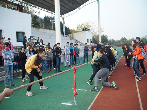 为了丰富同学们的课余文化生活,增进同学之间的交流,培养团队协作能力,结合学校学风建设月活动的开展。12月27日,旅游学院学长组全体成员召集15级新生,在风雨操场举办了一场别开生面的拔河比赛。15级辅导员黄小华、梁文宏(挂职)也到比赛现场给同学们加油鼓劲。