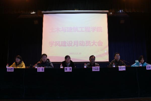 会议伊始,由学院学工组长宋明霞老师宣读了《土木与建筑工程学院学风建设月活动方案》,提出如何具体开展工作,去实现学校提出的学风建设月“五高四低三提升”的活动目标。随后,学院党委副书记王盛老师分析了当下我院学风建设中存在的问题,指出了学风建设的关键是营造良好的学习氛围,并希望同学们深入思考,从我做起,向优秀看齐,希望每个人都能为优良学风的建设作出力所能及的贡献。最后,学院副院长余文成老师从教学角度分析,阐明了优良学风对教学的重要作用,希望在今后的教学中做到教学相长,相互促进,共同提升。