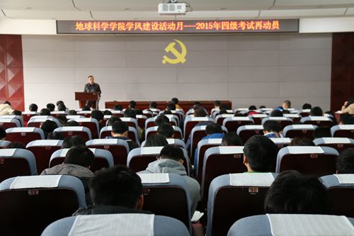 为了切实推进学风建设活动取得实际效果,地球科学学院领导专题开会讨论相关问题,落实具体目标和服务措施,并要求严格执行学校关于学风建设活动月有关规定,抓好以本周英语四级考试攻坚为切入点的各项学风建设工作。学院领导分工负责相关工作,姜子亮书记、耿俊茂副书记组织进行英语四级再动员活动,并开展宿舍学习环境营造和不利因素整治等工作,熊彬院长等同志带头查看自习室和课堂,并整合学习资源提供会议室和两个实验室作为学生自习场所,力争全院上下合力推进学风建设取得实效。
