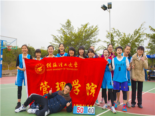 12月8日下午,2015年桂工杯篮球赛决赛在雁山校区二号篮球场拉开战幕。管理学院男女篮经过激烈的比拼,分别获得男子组第五名和女子组第一名的优异成绩。