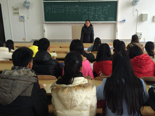 为认真贯彻落实学校2015年学生工作专题会议精神,及时传达“学风建设活动月”工作布置专题会议内容,12月9日中午,外国语学院在致远楼04325教室召开