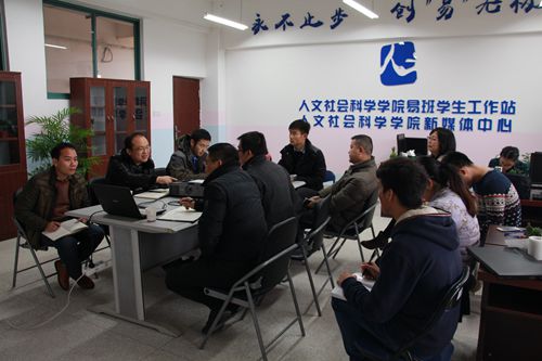 为深入了解人文社会科学院贯彻落实学校2015年学生工作会议精神情况,12月4日上午,学工部(处)部(处)长唐壮东、勤工助学办公室主任农庆能、心理健康中心主任谭咏梅、易班发展中心施林劼老师一行四人来我院调研。学院党委书记金飞、副院长(主持行政工作)曾鹏、党委副书记汪晟和全体辅导员参加了调研会。