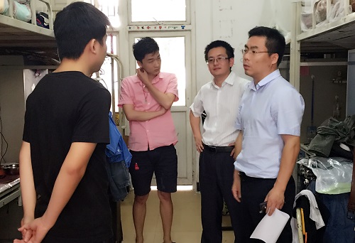 5月26日下午17时,在学院党委书记金飞、党委副书记汪晟的组织带领下,对人文学院学生宿舍安全隐患情况进行了一次全面的排查,对于发现的安全隐患,检查组及时记录并提出整改意见。
