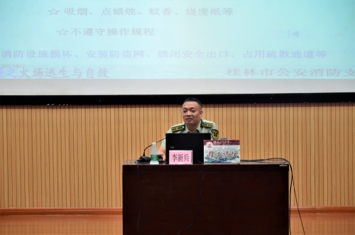 为进一步加强我院师生消防安全意识,推进我校消防安全宣传工作,6月9日下午15时,环境学院邀请了桂林市公安消防支队雁山消防大队助理工程师李新兵参谋在图书馆报告厅开展了消防安全知识讲座。参与讲座的还有环境学院团委副书记唐红兵老师,16级辅导员田明浩老师及我院近200名学生。