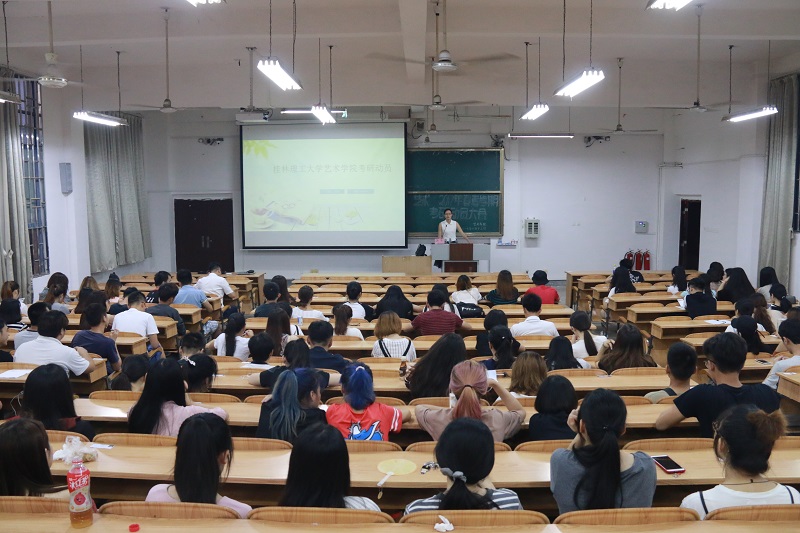为了让同学们进一步了解考研、认识考研、明确目标、确定方向,拥有更好的未来,6月13日晚,艺术学院在雁山校区06105室召开了2014级学生考研动员大会。本次大会由艺术学院党委副书记万千老师主讲,2014级辅导员张萌萌老师主持,2014级全体同学出席本次大会。