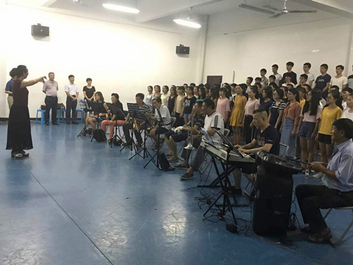 近日,理学院统计15级学生刻苦训练,代表雁山区积极备战“迎十九大,感恩祖国”桂林市迎国庆歌咏大赛。9月18日晚,学校校长解庆林、副校长王敦球与雁山区副区长李红等人亲临我校雁山校区大学生活动中心训练现场慰问参赛选手和指导老师。