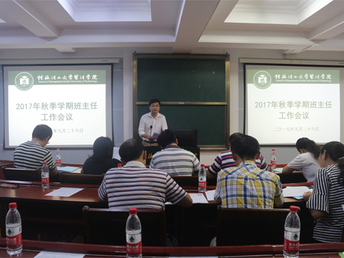 为进一步统一思想,扎实推进学院学生工作,管理学院于2017年9月26日晚在屏风7311教室召开了2017年秋季学期第一次班主任工作会议,学院全体辅导员、班主任参加了此次会议。会议由学院党委副书记张瑞主持。