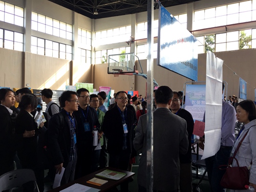 地球科学学院领导、老师与双选会现场的企业、应聘学生进行交流