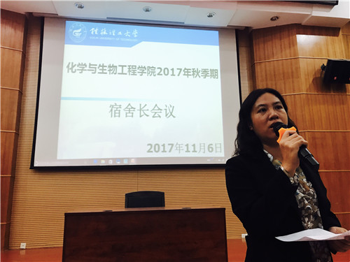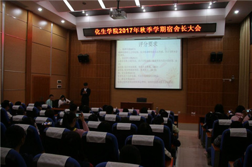为营造良好生活氛围,加强宿舍管理,化生学院于11月6日晚在12栋报告厅召开了2017年秋季期宿舍长会议。学院党委副书记陶剑飞老师、辅导员何宗辉老师以及学院全体宿舍长参加了本次会议,会议由何老师主持。