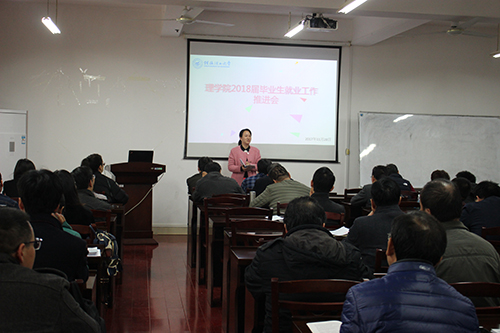 11月28日下午,理学院在雁山校区07122召开2018届毕业生就业工作推进会。理学院领导成员、毕业生指导老师参加了此次会议,院党委副书记孙巍主持。