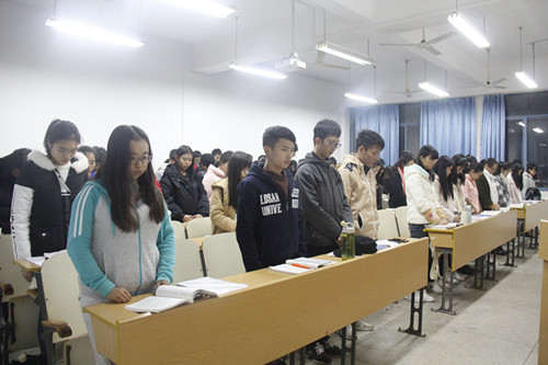 为悼念南京大屠杀中的死难者,进一步强化我院学子的爱国主义思想意识。理学院于12月13日晚自习时间,在各班团支书的带领下举行了南京大屠杀死难者国家公祭日默哀活动,理学院党委副书记孙巍老师、团委书记单江涛老师及17级辅导员李鹏宇老师也参与到了其中,与同学们共同默哀。