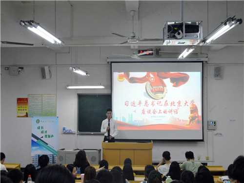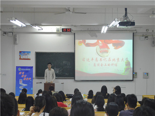 为深入学习习近平总书记在北大师生座谈会重要讲话精神,鼓舞学生成为有理想有担当的新时代大学生。5月6日晚,我院分年级分批次召开学习习近平总书记在北京大学讲话精神暨“成长成才我发声”主题教育会,实现了学院学生学习习近平总书记在北京大学讲话精神全覆盖。