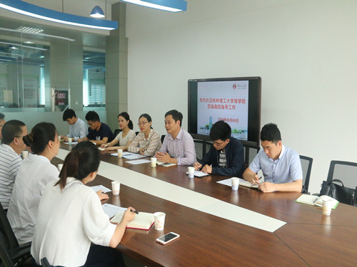 在座谈会上,贺州学院经济与管理学院的马院长详细介绍了该院整体办学情况、学生工作建设思路以及近年来大学生创新创业工作开展的宝贵经验。我院张副书记对贺州学院经济与管理学院的热情接待和无保留的经验传送表示由衷的感谢,并简要介绍了我院的发展历程和学生工作基本情况。随后,双方围绕学生人素质培育、学生管理、校园文化活动品牌建设、大学生创新创业、辅导员队伍建设等方面进行了深入交流和探讨,并一致同意在学生工作品牌建设上需进一步加强交流合作。