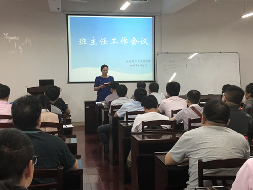 2018年5月15日下午3时,理学院于雁山07122会议室召开班主任工作会议。学院全体班主任及年级辅导员参加,会议由理学院党委副书记孙巍主持。